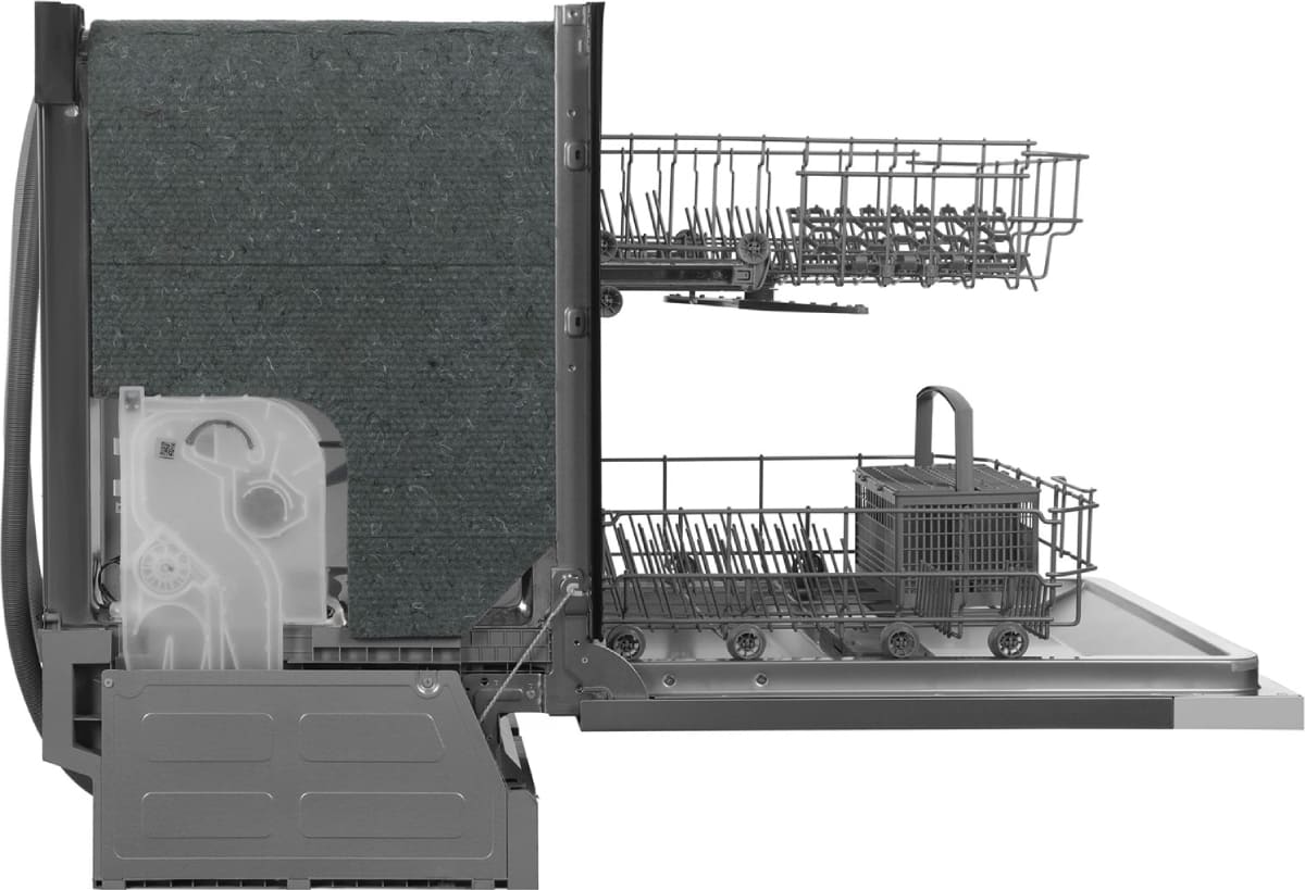 Встраиваемая модель Хендай отлично впишется в любой интерьер, главное — правильно выбрать место, чтобы подвести коммуникации. Устанавливается в нишу целиком, полностью закрывается декоративной панелью. Обратите внимание: в комплекте не идет фасад, его необходимо установить самостоятельно. Имеет стандартные размеры, поэтому может не поместиться на очень маленькой кухне. В камеру можно загрузить ограниченное число комплектов: 12 шт. Комплектом считается набор посуды на одного человека, который нужен для полноценного приема пищи: глубокая и плоская тарелки, тарелка для салата, блюдце под чашку, сама чашка, ложка и вилка.