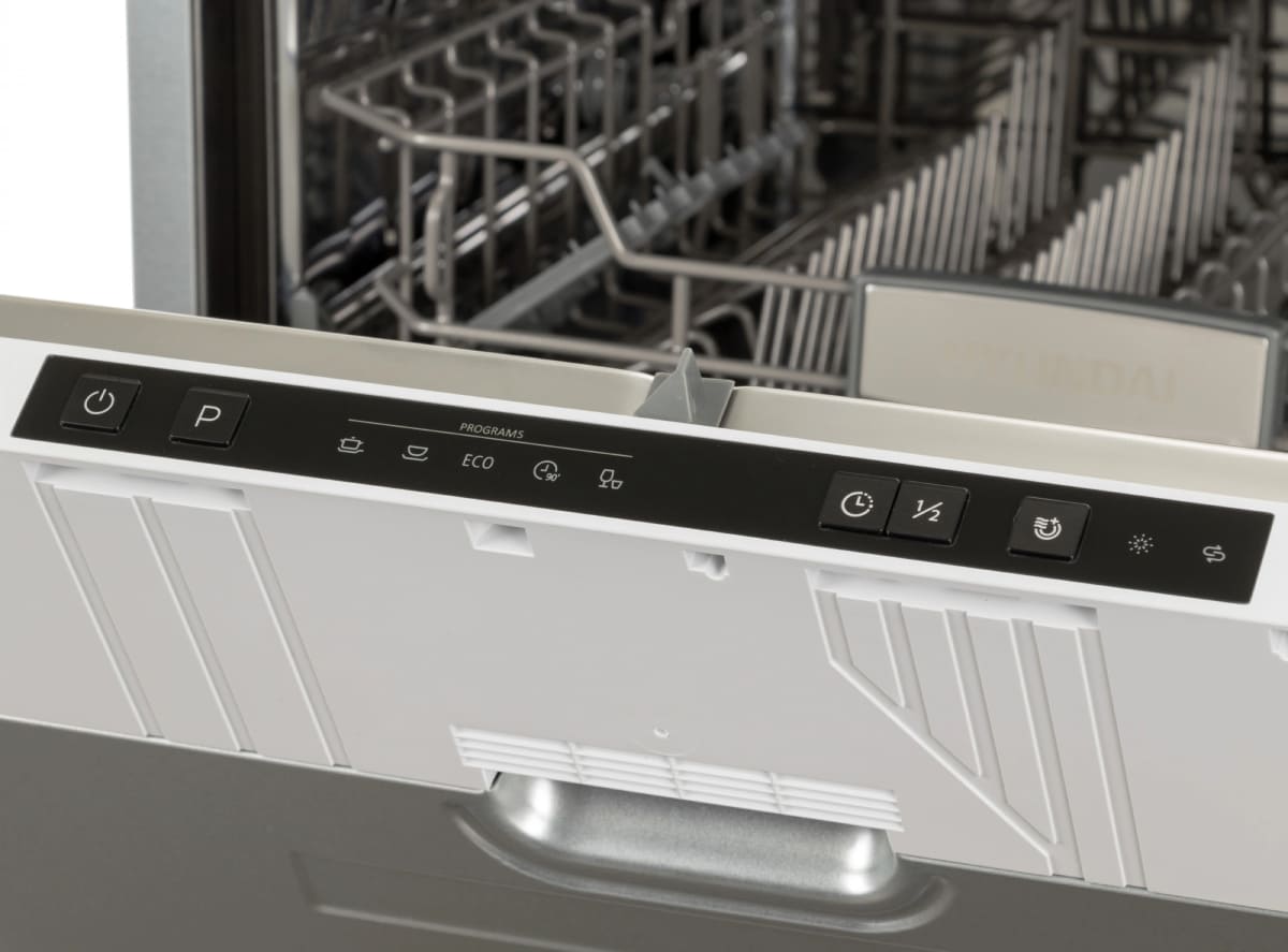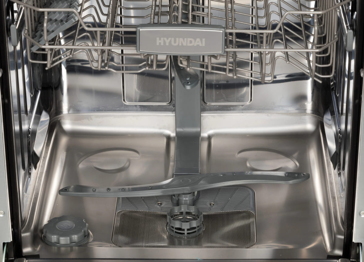 Встраиваемая модель Хендай отлично впишется в любой интерьер, главное — правильно выбрать место, чтобы подвести коммуникации. Устанавливается в нишу целиком, полностью закрывается декоративной панелью. Обратите внимание: в комплекте не идет фасад, его необходимо установить самостоятельно. Имеет стандартные размеры, поэтому может не поместиться на очень маленькой кухне. В камеру можно загрузить ограниченное число комплектов: 12 шт. Комплектом считается набор посуды на одного человека, который нужен для полноценного приема пищи: глубокая и плоская тарелки, тарелка для салата, блюдце под чашку, сама чашка, ложка и вилка.