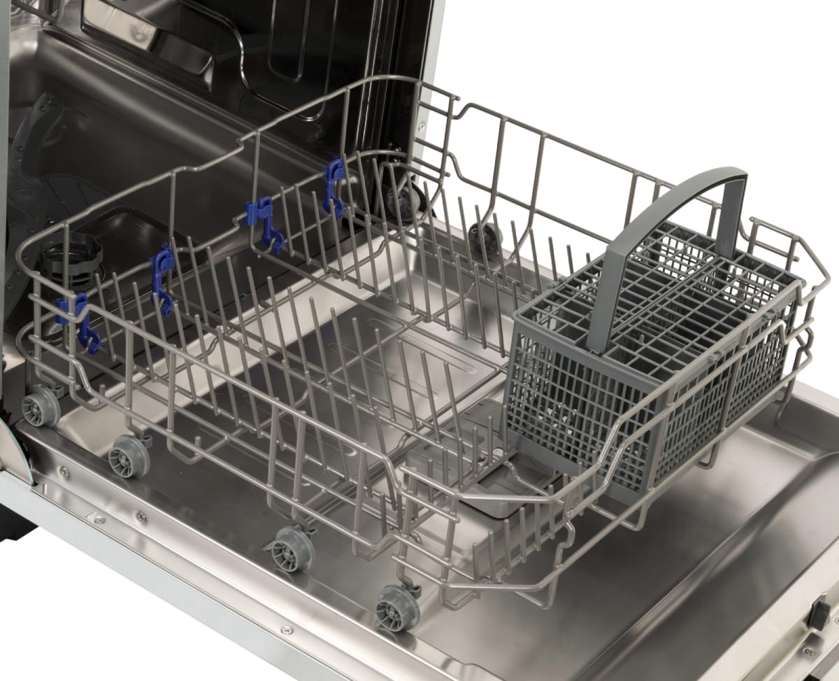 Корзина для столовых приборов — один из обязательных аксессуаров, которыми оснащается любая посудомоечная машина. Она представляет собой сетчатый пластиковый органайзер, в котором устанавливаются в вертикальном положении ложки, ножи и вилки. Корзина, как правило, разделяется на отдельные отсеки, в каждый из которых можно поместить один или несколько предметов. Зачастую сверху она закрывается специальной крышкой, которая также служит для разделения приборов, способствуя более тщательному их мытью.