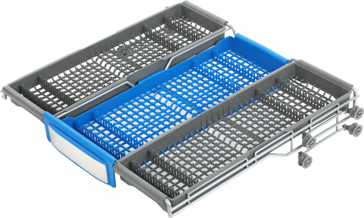 Как правило, полки для столовых приборов находятся в верхней корзине — таким образом, чтобы под ними можно было расположить, например, небольшие чашки. Часто полки оснащаются специальными разделителями, которые позволяют зафиксировать любой предмет, чтобы он не мог случайно сдвинуться с перекрыть доступ к соседним. В ряде моделей для столовых приборов предусматриваются большие полки, которые размещаются на третьем уровне. Такая конструкция считается оптимальной, так как освобождается место в корзинах для более крупных предметов. Такие полки достигают в высоту 5 см, так что на них можно размещать не только обычные ножи, ложки или вилки, но и более объемные половники, шумовки, лопатки, терки и другую подобную утварь.