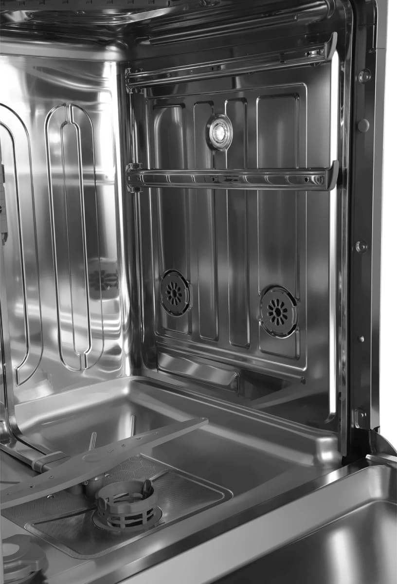 Внутренняя камера посудомоечной машины из нержавеющей стали способствует длительной успешной эксплуатации прибора. Нержавеющая сталь — один из самых распространенных материалов, которые применяются в производстве бытовой техники для кухни. Она обладает рядом уникальных качеств — в частности, сталь практически не подвержена коррозии, отличается высокой стойкостью к температурным, механическим и химическим воздействиям.