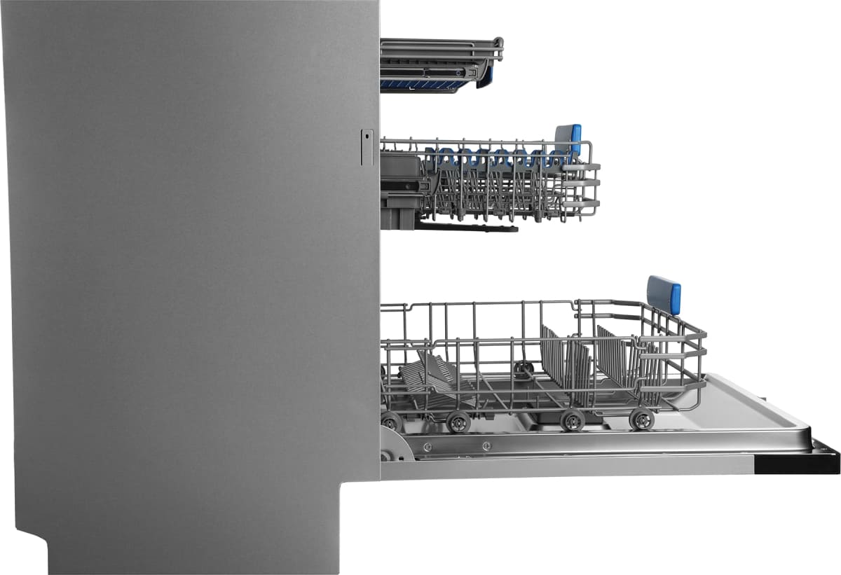 Встраиваемая модель Хендай отлично впишется в любой интерьер, главное — правильно выбрать место, чтобы подвести коммуникации. Устанавливается в нишу целиком, полностью закрывается декоративной панелью. Обратите внимание: в комплекте не идет фасад, его необходимо установить самостоятельно. Имеет стандартные размеры, поэтому может не поместиться на очень маленькой кухне. В камеру можно загрузить ограниченное число комплектов: 16 шт. Комплектом считается набор посуды на одного человека, который нужен для полноценного приема пищи: глубокая и плоская тарелки, тарелка для салата, блюдце под чашку, сама чашка, ложка и вилка.