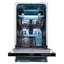 Панель управления находится в верхнем торце дверцы. Для настройки параметров предусмотрены кнопки, снабженные символьными подсказками, имеется LED-дисплей. Если посудомойка закрыта, панель управления не видна. Об окончании цикла вас оповестит звуковой сигнал.