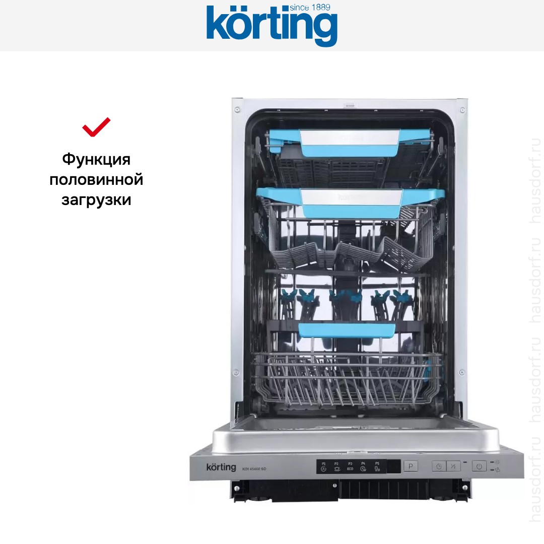 Посудомоечная машина Korting KDI 45460 SD — узкая встраиваемая посудомойка, которая отличается большим набором автоматических программ и значительной вместимостью. Немецкая компания-производитель известна своей безопасной и надежной бытовой техникой хорошего качества, выгодными ценами, использованием инновационных технологий. Посудомойка, изготовленная на предприятии компании в Китае, имеет двухлетнюю гарантию. О других ее особенностях и преимуществах вы сможете узнать из нашего обзора.