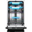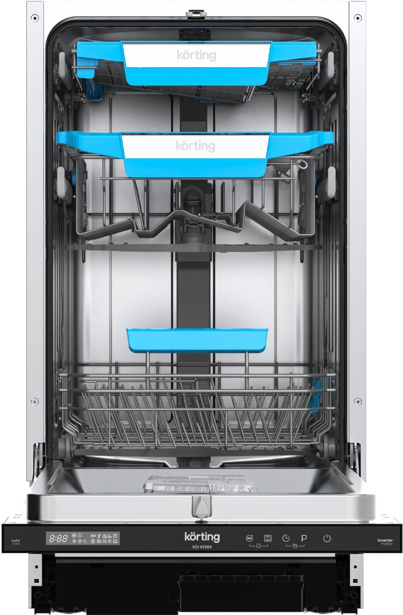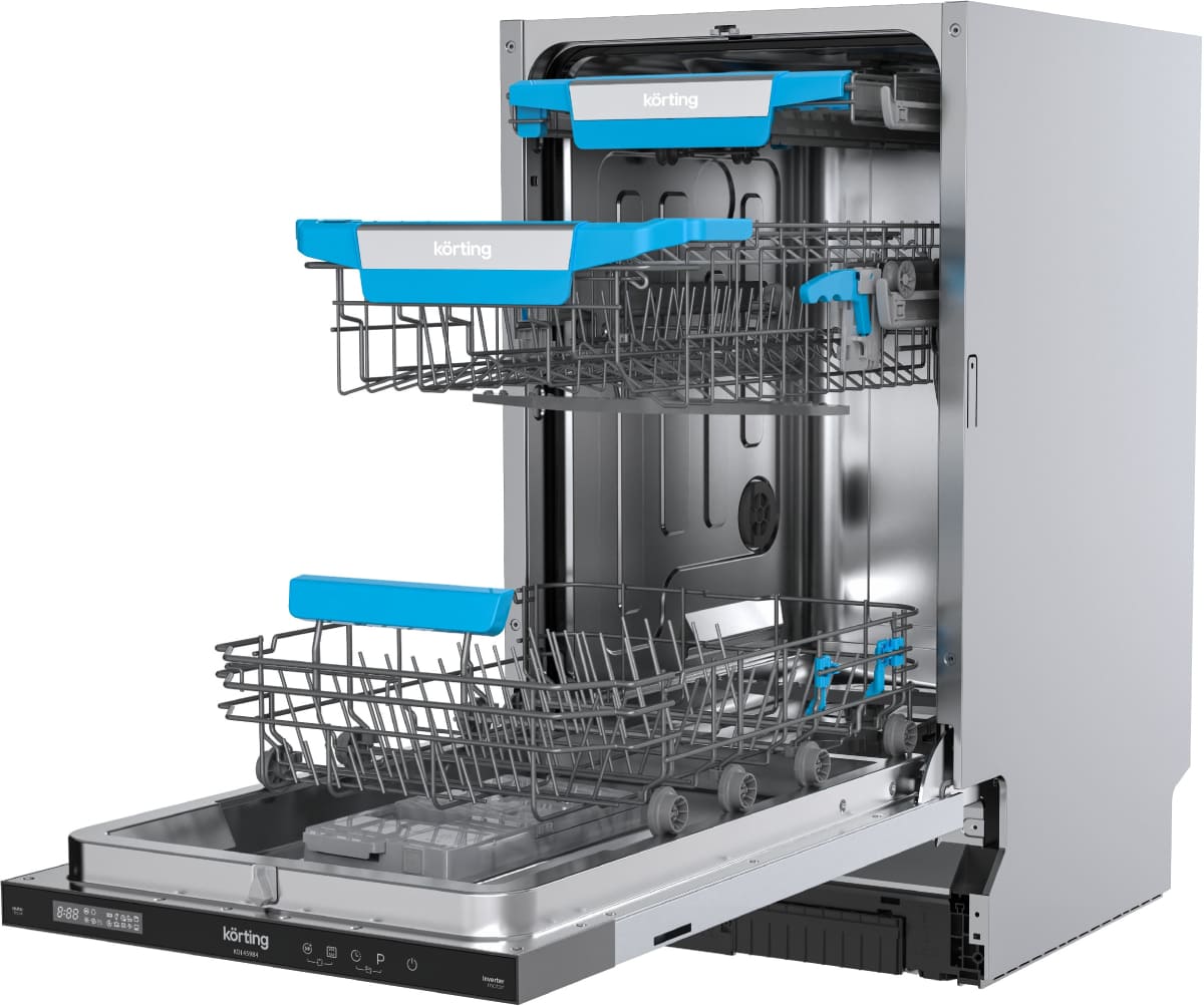 Встраиваемая модель Кертинг отлично впишется в любой интерьер, главное — правильно выбрать место, чтобы подвести коммуникации. Устанавливается в нишу целиком, полностью закрывается декоративной панелью. Обратите внимание: в комплекте не идет фасад, его необходимо установить самостоятельно. Имеет уменьшенную ширину — благодаря этому поместится даже на очень маленькой кухне. В камеру можно загрузить ограниченное число комплектов: 10 шт. Комплектом считается набор посуды на одного человека, который нужен для полноценного приема пищи: глубокая и плоская тарелки, тарелка для салата, блюдце под чашку, сама чашка, ложка и вилка.