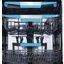 Как и другие встраиваемые пмм, эту модель отличает закрытая панель управления серебристого цвета. На ней имеется большой цифровой дисплей, куда выводится вся информация о выбранной программе, дополнительных опциях, оставшемся времени, а также кнопки активации дополнительных опций. Для отслеживания работы машины при закрытой дверце предусмотрен индикатор типа «Луч на полу», который гаснет, когда цикл мытья завершен.