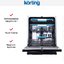 Посудомоечная машина Korting KDI60985 относится к полноразмерным моделям и имеет ширину 59.8 см. Глубина составляет 55 см, высота — 81.5 см. Стандартные габариты ПММ позволяют ей легко вписаться в обычный кухонный гарнитур.