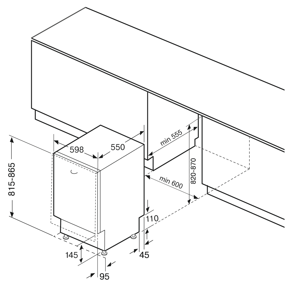 Встраиваемая часть (В*Ш*Г), мм: 815-865*598*550
