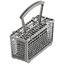 Корзина для столовых приборов достаточно высока, ввиду чего она устанавливается в нижнем коробе, где для нее предусматривается специальное место между разделителями для тарелок. Приборы в корзине могут размещаться как вниз, так и вверх рукоятками — это зависит от количества приборов и требований пользователя. Однако острые предметы — ножи или вилки — необходимо размещать острием вниз для предотвращения травм. Ножи рекомендуется размещать в корзинах с осторожностью, поскольку лезвия из керамики, например, могут затупиться. Чтобы избежать этого, следует использовать фирменные моющие средства и обязательно располагать ножи по отдельности, чтобы они не соприкасались с другими предметами.