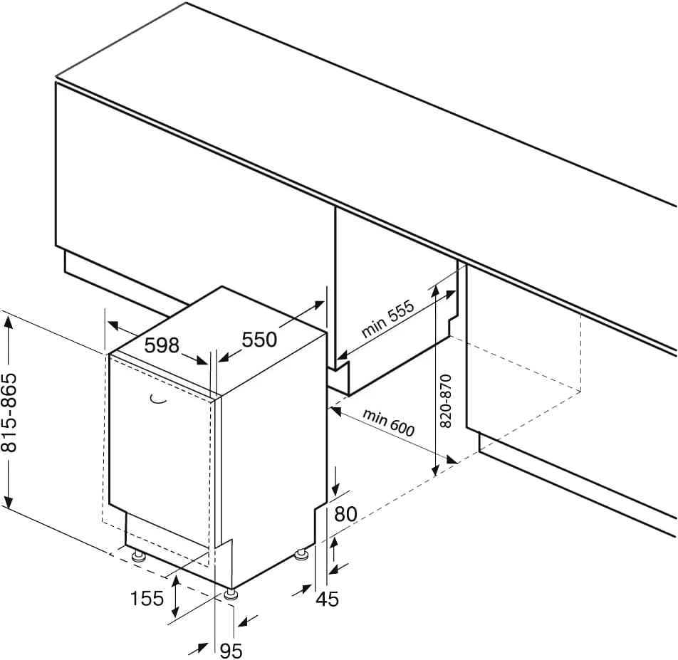 Большая часть полноразмерных и узких посудомоек встраиваемого и отдельностоящего вида имеет высоту около 82-85 см: такие модели легко размещаются под столешницей. Встраиваемые модели несколько ниже, так как у них отсутствует верхняя крышка.