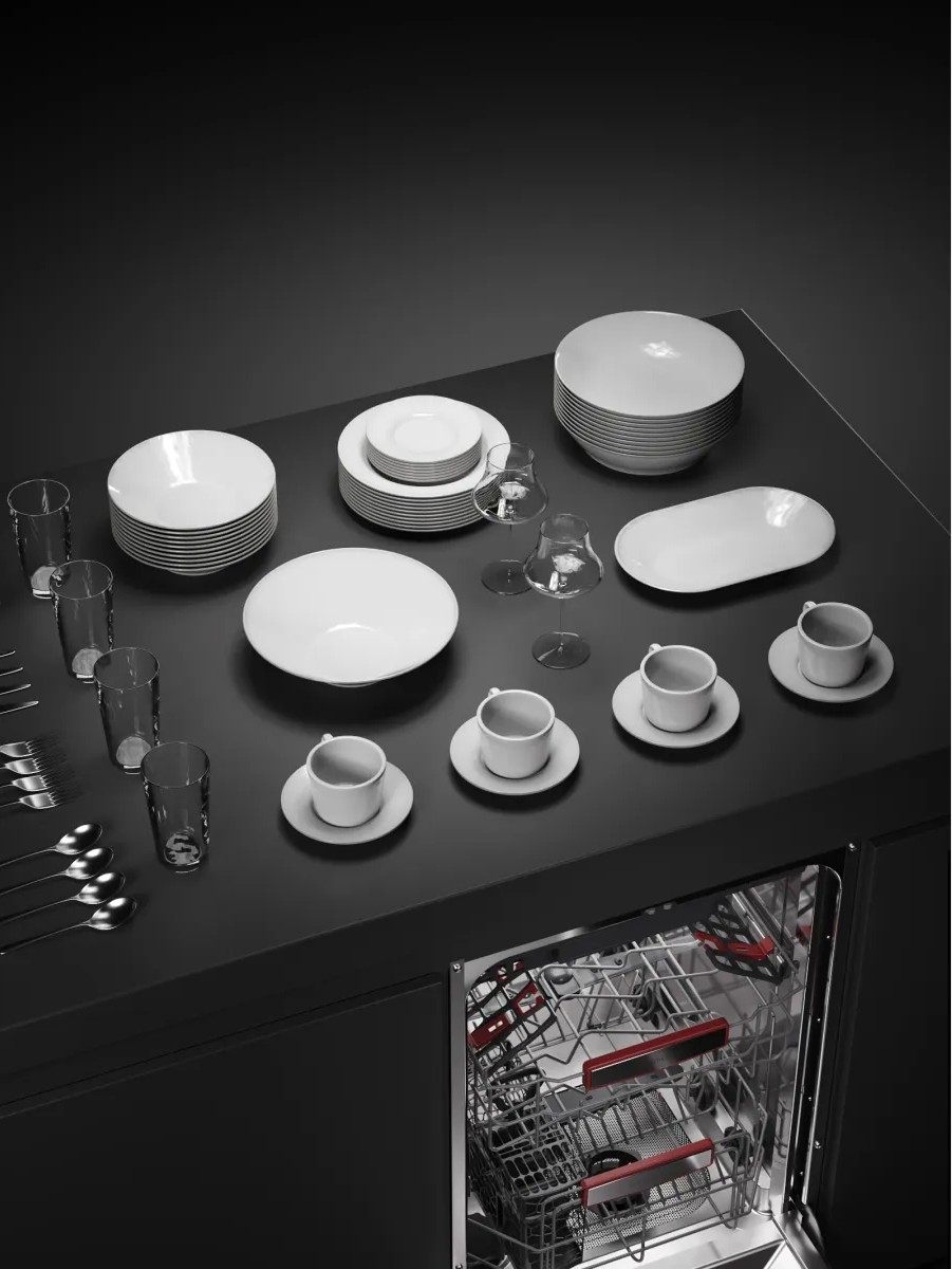 Встраиваемая модель Куперсберг отлично впишется в любой интерьер, главное — правильно выбрать место, чтобы подвести коммуникации. Устанавливается в нишу целиком, полностью закрывается декоративной панелью. Обратите внимание: в комплекте не идет фасад, его необходимо установить самостоятельно. Имеет уменьшенную ширину — благодаря этому поместится даже на очень маленькой кухне. В камеру можно загрузить ограниченное число комплектов: 11 шт. Комплектом считается набор посуды на одного человека, который нужен для полноценного приема пищи: глубокая и плоская тарелки, тарелка для салата, блюдце под чашку, сама чашка, ложка и вилка.
