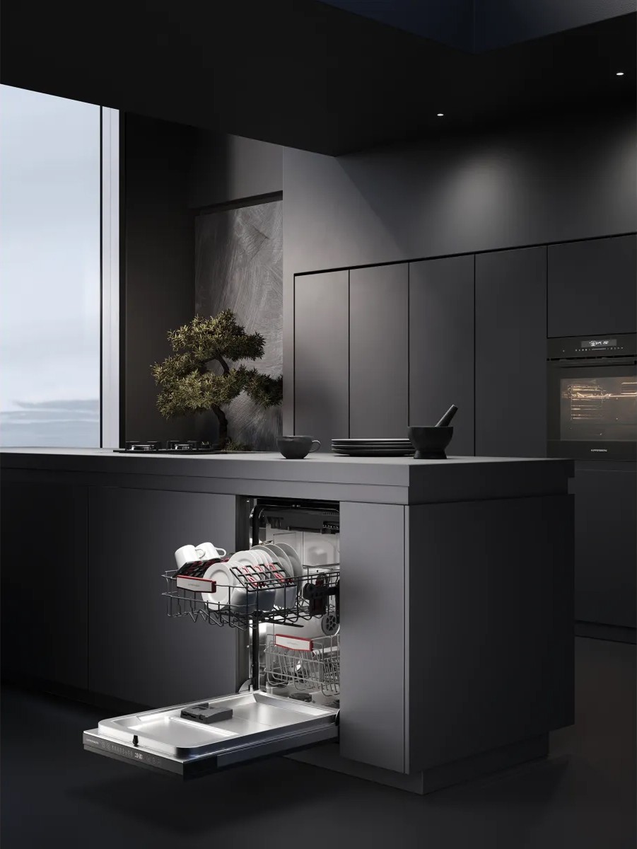 Полностью встраиваемая — посудомоечная машина закрыта мебельным фасадом, панель управления не на виду. Это повышает безопасность работы и облегчает подбор техники под дизайн кухни.