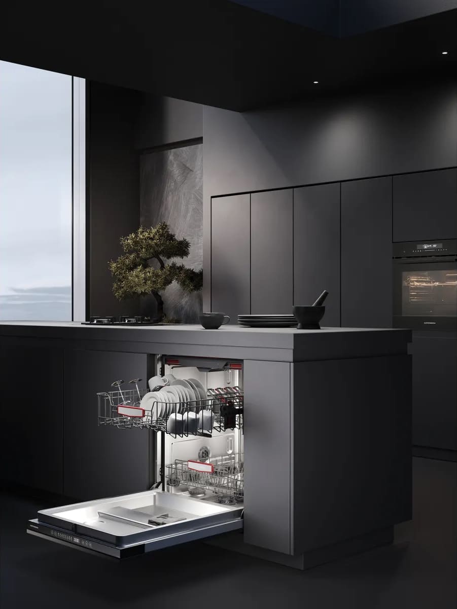 Полностью встраиваемая — посудомоечная машина закрыта мебельным фасадом, панель управления не на виду. Это повышает безопасность работы и облегчает подбор техники под дизайн кухни.