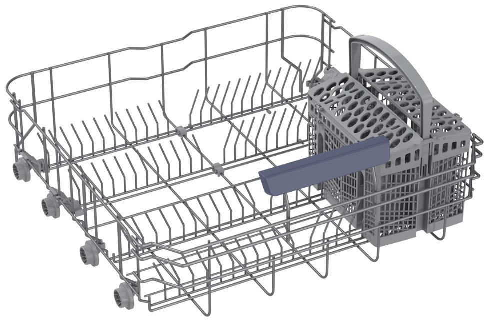 Корзина для столовых приборов достаточно высока, ввиду чего она устанавливается в нижнем коробе, где для нее предусматривается специальное место между разделителями для тарелок. Приборы в корзине могут размещаться как вниз, так и вверх рукоятками — это зависит от количества приборов и требований пользователя. Однако острые предметы — ножи или вилки — необходимо размещать острием вниз для предотвращения травм. Ножи рекомендуется размещать в корзинах с осторожностью, поскольку лезвия из керамики, например, могут затупиться. Чтобы избежать этого, следует использовать фирменные моющие средства и обязательно располагать ножи по отдельности, чтобы они не соприкасались с другими предметами.