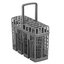 Корзина для столовых приборов — один из обязательных аксессуаров, которыми оснащается любая посудомоечная машина. Она представляет собой сетчатый пластиковый органайзер, в котором устанавливаются в вертикальном положении ложки, ножи и вилки. Корзина, как правило, разделяется на отдельные отсеки, в каждый из которых можно поместить один или несколько предметов. Зачастую сверху она закрывается специальной крышкой, которая также служит для разделения приборов, способствуя более тщательному их мытью.