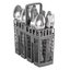 Корзина для столовых приборов достаточно высока, ввиду чего она устанавливается в нижнем коробе, где для нее предусматривается специальное место между разделителями для тарелок. Приборы в корзине могут размещаться как вниз, так и вверх рукоятками — это зависит от количества приборов и требований пользователя. Однако острые предметы — ножи или вилки — необходимо размещать острием вниз для предотвращения травм. Ножи рекомендуется размещать в корзинах с осторожностью, поскольку лезвия из керамики, например, могут затупиться. Чтобы избежать этого, следует использовать фирменные моющие средства и обязательно располагать ножи по отдельности, чтобы они не соприкасались с другими предметами.