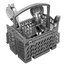 Корзина для столовых приборов — один из обязательных аксессуаров, которыми оснащается любая посудомоечная машина. Она представляет собой сетчатый пластиковый органайзер, в котором устанавливаются в вертикальном положении ложки, ножи и вилки. Корзина, как правило, разделяется на отдельные отсеки, в каждый из которых можно поместить один или несколько предметов. Зачастую сверху она закрывается специальной крышкой, которая также служит для разделения приборов, способствуя более тщательному их мытью.