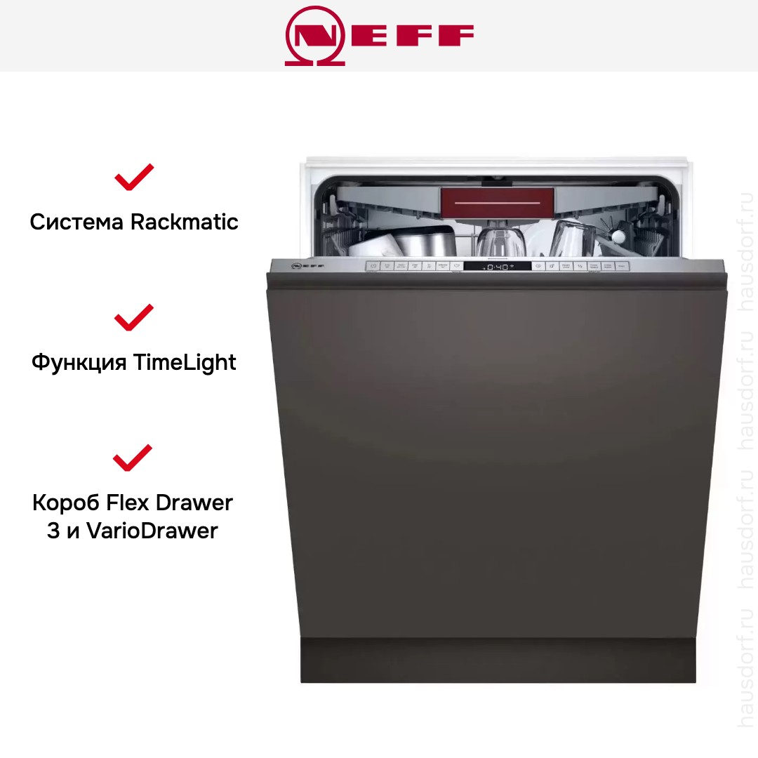 Посудомоечная машина Neff S175HCX10R станет отличным помощником на вашей кухне, вам больше не придется тратить драгоценное время на мытье после встречи с друзьями, достаточно загрузить всю посуду в камеру и выбрать необходимую программу. Есть возможность полного встраивания и закрытия панелью по вашему вкусу, что не нарушит дизайн.