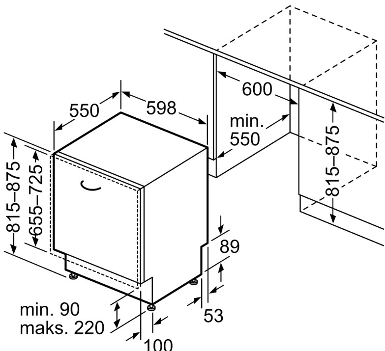 Встраиваемые устройства устанавливаются в тумбу или нишу мебельного гарнитура. В случае, если они полностью закрыты мебельным фасадом, машины считаются полностью встраиваемыми. Такое размещение позволяет сохранить единый стиль интерьера. Панель управления их также скрыта — чтобы начать работу и задать программу, дверцу придется открыть.