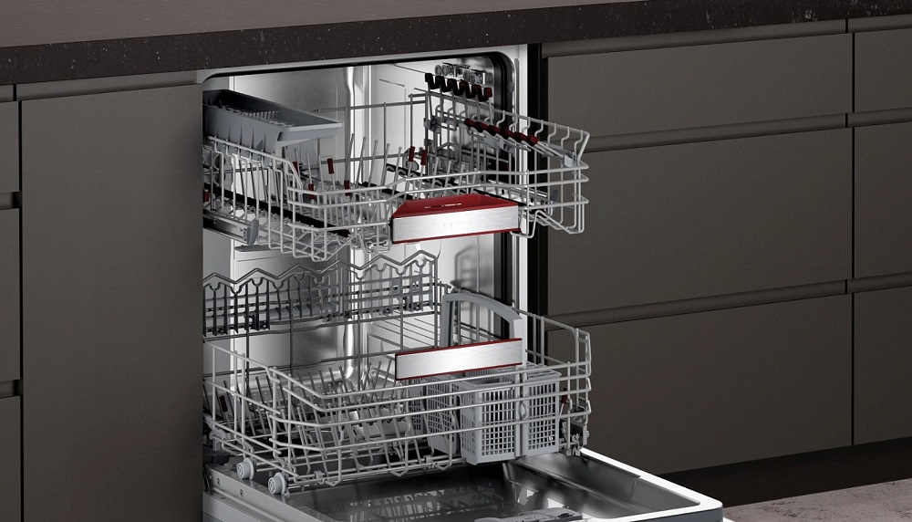 Встраиваемая модель Нефф отлично впишется в любой интерьер, главное — правильно выбрать место, чтобы подвести коммуникации. Устанавливается в нишу целиком, полностью закрывается декоративной панелью. Обратите внимание: в комплекте не идет фасад, его необходимо установить самостоятельно. Имеет стандартные размеры, поэтому может не поместиться на очень маленькой кухне. В камеру можно загрузить ограниченное число комплектов: 13 шт. Комплектом считается набор посуды на одного человека, который нужен для полноценного приема пищи: глубокая и плоская тарелки, тарелка для салата, блюдце под чашку, сама чашка, ложка и вилка.