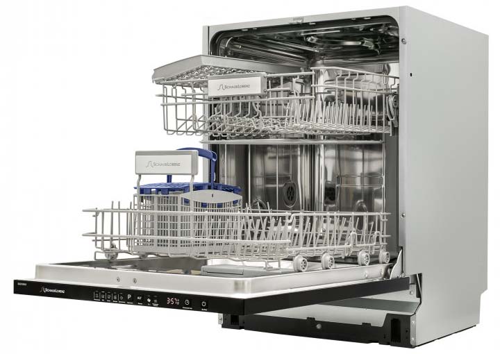 Полноразмерные модели выбирают в больших семьях, а также те, кто много готовит или часто принимает гостей. Их вместимость может составить до 15 комплектов посуды, а габаритные размеры соответствуют размерам стандартной кухонной мебели шириной и глубиной 60 см и высотой 82-85 см. Они выпускаются как во встраиваемом, так и в отдельностоящем варианте: во втором случае для установки понадобится достаточно много места. Как правило, полноразмерные приборы отличаются большим набором стандартных и специальных программ мойки, а также дополнительных опций: в частности, они оснащаются третьей корзиной для мытья столовых приборов.