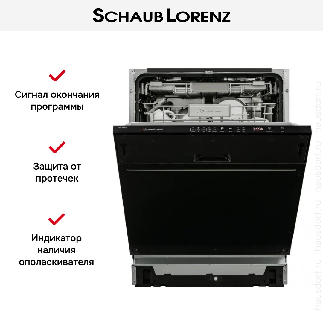 Встраиваемая модель Шауб Лоренц отлично впишется в любой интерьер, главное — правильно выбрать место, чтобы подвести коммуникации. Устанавливается в нишу целиком, полностью закрывается декоративной панелью. Обратите внимание: в комплекте не идет фасад, его необходимо установить самостоятельно. Имеет стандартные размеры, поэтому может не поместиться на очень маленькой кухне. В камеру можно загрузить ограниченное число комплектов: 14 шт. Комплектом считается набор посуды на одного человека, который нужен для полноценного приема пищи: глубокая и плоская тарелки, тарелка для салата, блюдце под чашку, сама чашка, ложка и вилка.