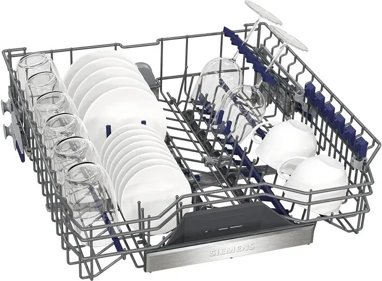 Встраиваемая модель Сименс отлично впишется в любой интерьер, главное — правильно выбрать место, чтобы подвести коммуникации. Устанавливается в нишу целиком, полностью закрывается декоративной панелью. Обратите внимание: в комплекте не идет фасад, его необходимо установить самостоятельно. Имеет стандартные размеры, поэтому может не поместиться на очень маленькой кухне. В камеру можно загрузить ограниченное число комплектов: 14 шт. Комплектом считается набор посуды на одного человека, который нужен для полноценного приема пищи: глубокая и плоская тарелки, тарелка для салата, блюдце под чашку, сама чашка, ложка и вилка.