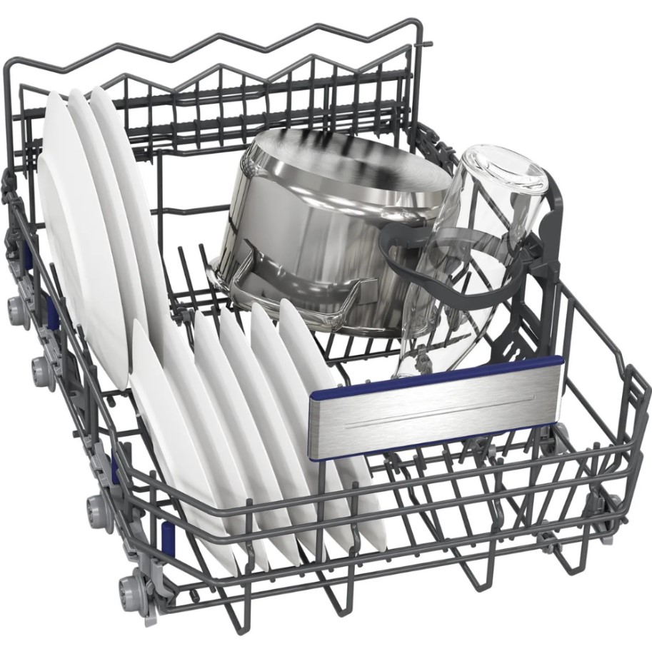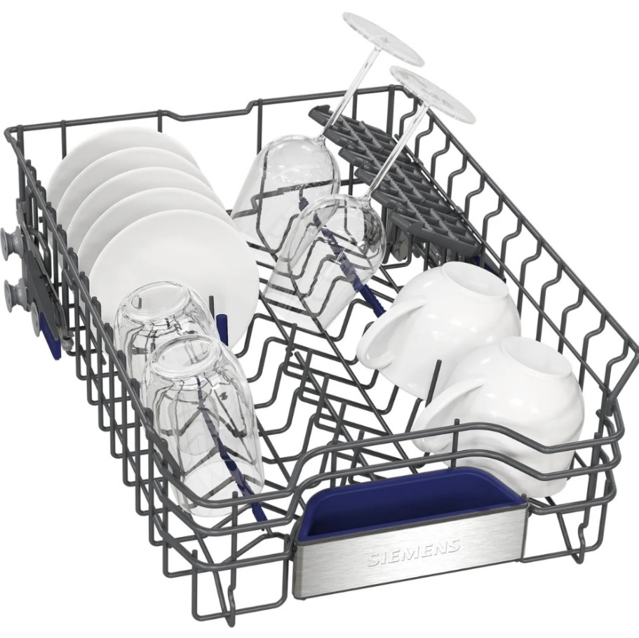 Встраиваемая модель Сименс отлично впишется в любой интерьер, главное — правильно выбрать место, чтобы подвести коммуникации. Устанавливается в нишу целиком, полностью закрывается декоративной панелью. Обратите внимание: в комплекте не идет фасад, его необходимо установить самостоятельно. Имеет уменьшенную ширину — благодаря этому поместится даже на очень маленькой кухне. В камеру можно загрузить ограниченное число комплектов: 10 шт. Комплектом считается набор посуды на одного человека, который нужен для полноценного приема пищи: глубокая и плоская тарелки, тарелка для салата, блюдце под чашку, сама чашка, ложка и вилка.