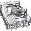 В верхнем и нижнем коробах предусмотрено по 6 складывающихся направляющих — в машинах Neff, например, они могут фиксироваться в 4 положениях для установки тарелок разного диаметра. В верхнем коробе имеются также составные складные упоры для высоких бокалов, полочки для чашек и для ножей. В нижнем коробе находятся FlipTines — держатели для глубокой посуды. Столовые приборы размещаются либо в компактной мобильной корзине, либо на третьем дополнительном уровне загрузки Vario Drawer PRO с переставляемыми по высоте боковыми частями, глубокой средней частью и складными держателями.