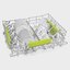 Дополнительный третий верхний разбрызгиватель способствует улучшению качества мытья. Балансировка петель позволяет зафиксировать дверцу машины во время открытия в произвольном положении. Две корзины серого цвета с заметными зелеными вставками оснащены фиксированными и складными держателями для посуды. Верхняя дополнительная корзина FlexiDuo предназначается для размещения столовых приборов. При установке машины возможна регулировка ножек по высоте от 820 до 890 мм. Функция ActiveLight служит для контроля за ходом мытья даже при закрытой дверце: луч красного цвета проецируется на пол и автоматически гаснет по завершении мойки. Опция FlexiTabs позволяет использовать для мытья и ополаскивания таблетки и капсулы типа «три в одном». Опция FlexiZone предназначается для мойки посуды при половинной загрузке. Программа «Стерилизация» способна справиться с 99,9% микробов, бактерий, вирусов, она служит для защиты от аллергии или для обработки детских бутылочек и другой посуды: мытье при этом производится обычным образом, а ополаскивание — при повышенной температуре 70 градусов. Модель отличается очень низким уровнем шума — он составляет всего 45 дБ.