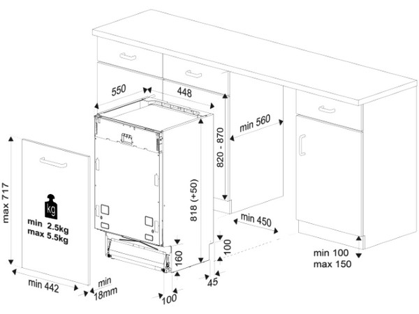 Стандартное значение глубины посудомойки у большинства производителей составляет 55 см. Для правильной установки к этой величине необходимо прибавить около 10 см на размещение шлангов и кабеля, а у встраиваемых моделей еще 5 см составит толщина декоративного мебельного фасада. Таким образом, глубина ниши или тумбы для установки посудомойки должна будет составить не менее 70 см. Для случаев, когда размеры кухонного гарнитура или метраж помещения не позволяют установить посудомойку стандартного размера, можно заменить ее устройством глубиной 54 см или ниже.