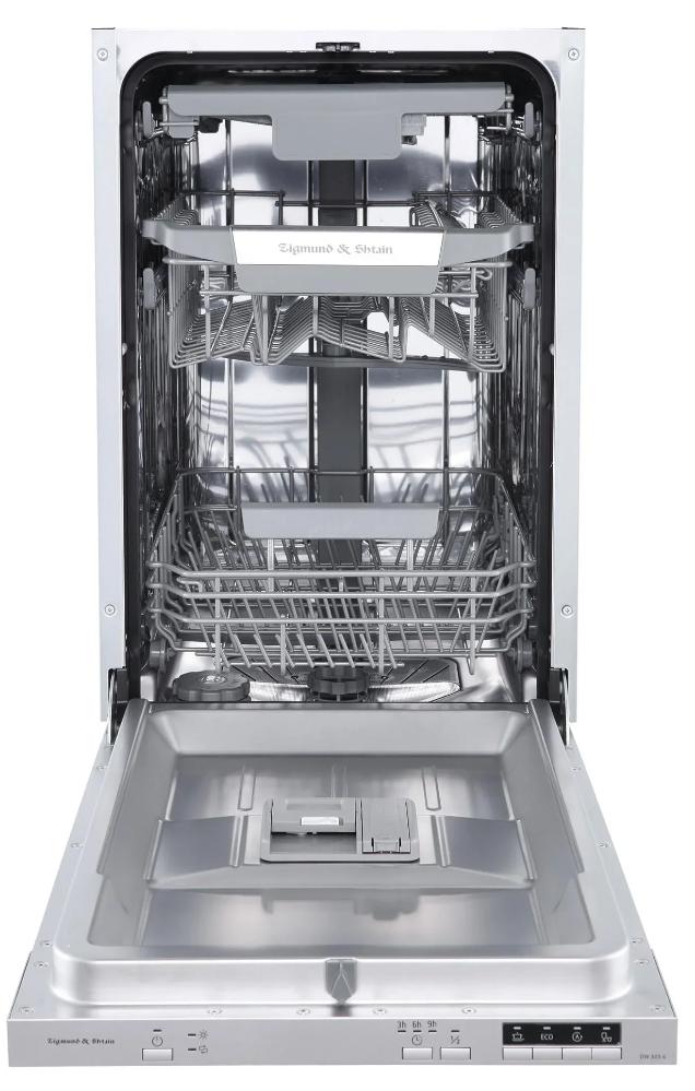 Встраиваемая модель Зигмунд Штайн отлично впишется в любой интерьер, главное — правильно выбрать место, чтобы подвести коммуникации. Устанавливается в нишу целиком, полностью закрывается декоративной панелью. Обратите внимание: в комплекте не идет фасад, его необходимо установить самостоятельно. Имеет уменьшенную ширину — благодаря этому поместится даже на очень маленькой кухне. В камеру можно загрузить ограниченное число комплектов: 10 шт. Комплектом считается набор посуды на одного человека, который нужен для полноценного приема пищи: глубокая и плоская тарелки, тарелка для салата, блюдце под чашку, сама чашка, ложка и вилка.