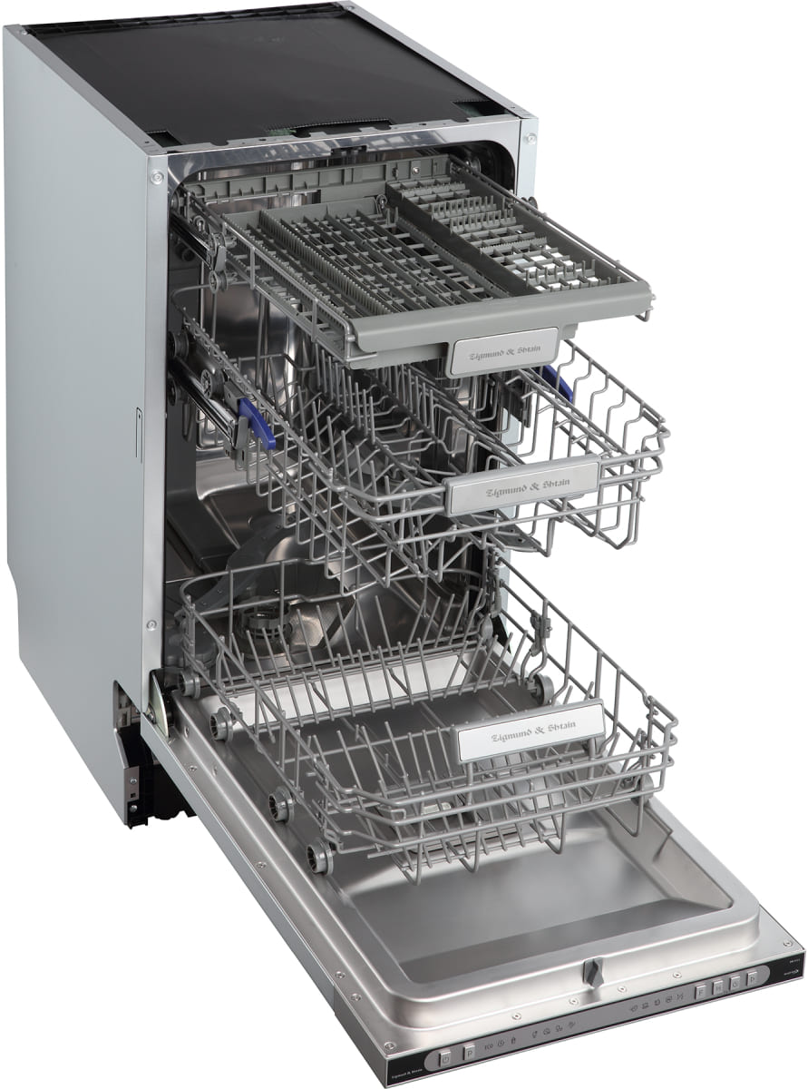 Встраиваемая модель Зигмунд Штайн отлично впишется в любой интерьер, главное — правильно выбрать место, чтобы подвести коммуникации. Устанавливается в нишу целиком, полностью закрывается декоративной панелью. Обратите внимание: в комплекте не идет фасад, его необходимо установить самостоятельно. Имеет уменьшенную ширину — благодаря этому поместится даже на очень маленькой кухне. В камеру можно загрузить ограниченное число комплектов: 10 шт. Комплектом считается набор посуды на одного человека, который нужен для полноценного приема пищи: глубокая и плоская тарелки, тарелка для салата, блюдце под чашку, сама чашка, ложка и вилка.
