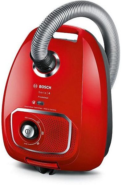 Пылесос Bosch BGBS4PET1 имеет стандартную конфигурацию — корпус на колесах, крепящийся к нему шланг с трубками-удлинителями и насадками. Данная модель рассчитана только на сухую уборку, которой достаточно для большинства пользователей. Мощный поток воздуха позволяет быстро всасывать как мелкие, так и крупные частицы, волосы и шерсть. Основной цвет прибора — красный. Пылесборник-мешок — привычный вариант, с которым легко работать, можно не беспокоиться о чрезмерном расходе электроэнергии. Он тщательно запирает внутри крупную пыль, но может незначительно пропускает очень мелкие частицы. Объем заполнения пылесборника — 4 л.