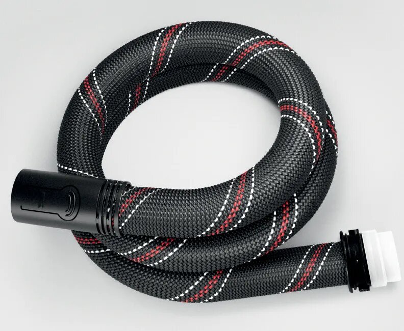 Шнур питания автоматически сматывается по завершении уборки. Для удлинения расстояния от корпуса до насадки используется специальная трубка, в данном случае — телескопическая.