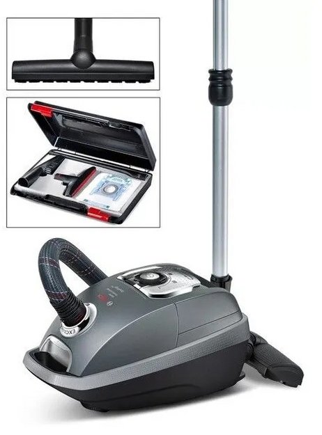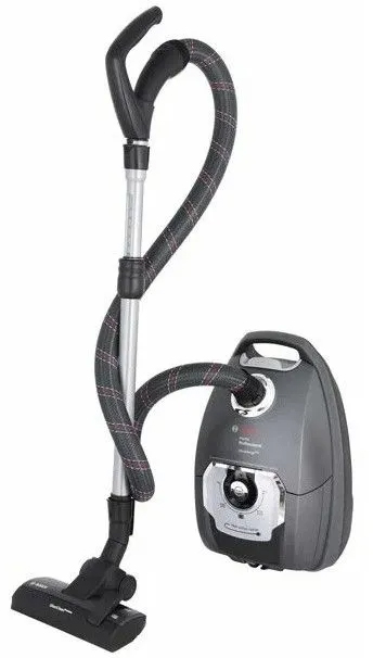 Пылесос Bosch BGL8PRO5 имеет стандартную конфигурацию — корпус на колесах, крепящийся к нему шланг с трубками-удлинителями и насадками. Данная модель рассчитана только на сухую уборку, которой достаточно для большинства пользователей. Мощный поток воздуха позволяет быстро всасывать как мелкие, так и крупные частицы, волосы и шерсть. Основной цвет прибора — серый. Пылесборник-мешок — привычный вариант, с которым легко работать, можно не беспокоиться о чрезмерном расходе электроэнергии. Он тщательно запирает внутри крупную пыль, но может незначительно пропускает очень мелкие частицы. Объем заполнения пылесборника — 5 л.