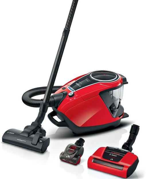 Пылесос Bosch BGS7PET имеет стандартную конфигурацию — корпус на колесах, крепящийся к нему шланг с трубками-удлинителями и насадками. Данная модель рассчитана только на сухую уборку, которой достаточно для большинства пользователей. Мощный поток воздуха позволяет быстро всасывать как мелкие, так и крупные частицы, волосы и шерсть. Основной цвет прибора — красный. В качестве пылесборника производитель установил стандартный контейнер. Пользоваться им легко и удобно: чтобы очистить, просто достаньте его и высыпьте все в мусорное ведро, а затем протрите или вымойте емкость изнутри. Объем заполнения пылесборника — 3 л.