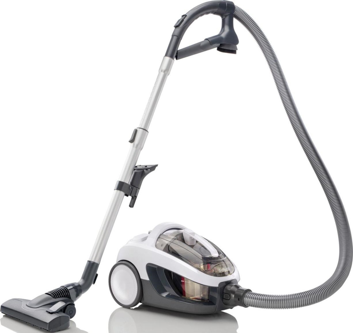 Прибор питается от электросети, поэтому проблем с внезапным отключением от недостатка заряда не возникнет. Корпус опирается на три колеса, поэтому его передвижение легкое, плавное, с быстрой сменой направления. Предусмотрена удобная система парковки — вертикальная, горизонтальная с которой пылесос занимает меньше места.