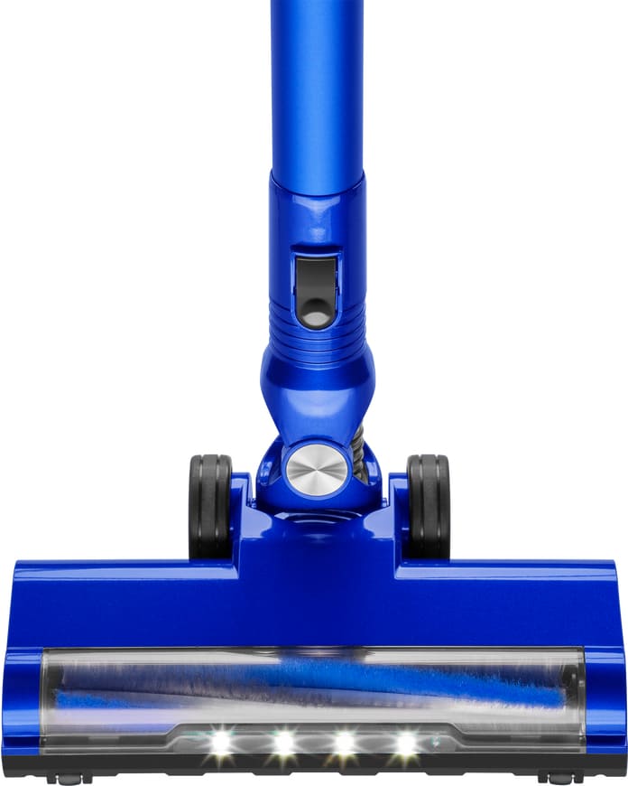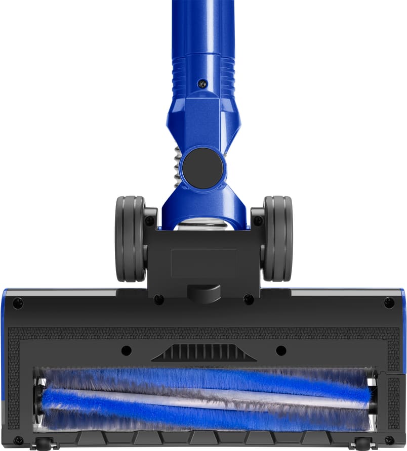Яркий синий корпус выполнен из прочного, устойчивого к механическим повреждениям пластика, сохраняющего внешнюю привлекательность даже при интенсивной эксплуатации. Эргономичная рукоятка с антискользящей поверхностью обеспечивает надёжный хват, а сбалансированное распределение массы исключает необходимость прилагать дополнительные усилия во время работы. Прозрачный пылесборник позволяет визуально контролировать степень заполнения, а его съёмная конструкция обеспечивает гигиеничное опорожнение без контакта с отходами.