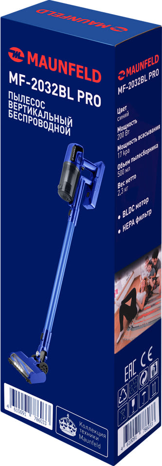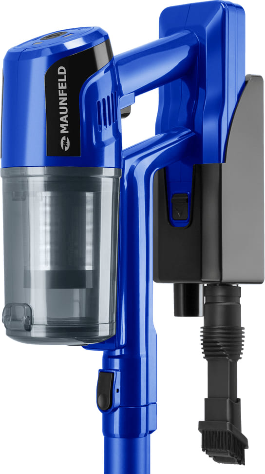 Пылесос Maunfeld MF-2032BL PRO — современный, лёгкий и манёвренный агрегат, созданный для быстрой и эффективной сухой уборки в городских условиях. Его вертикальная компоновка обеспечивает беспрецедентную мобильность: вы без усилий проникнете в узкие зазоры между мебелью, очистите труднодоступные уголки кухни или прихожей, а также справитесь с пылью на лестницах и балконах. Устройство одинаково хорошо справляется с твёрдыми покрытиями — ламинатом, плиткой, паркетом — и ковровыми изделиями средней ворсистости, собирая шерсть домашних питомцев, крошки, песок, пыльцу и другой мелкий мусор за один проход.