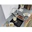 Внутри крана помещается шланг, который можно растянуть, чтобы достать струей воды до второй чаши мойки или тщательно сполоснуть посуду.
