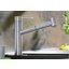Внутри крана помещается шланг, который можно растянуть, чтобы достать струей воды до второй чаши мойки или тщательно сполоснуть посуду.