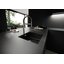 Внутри крана помещается шланг, который можно растянуть, чтобы достать струей воды до второй чаши мойки или тщательно сполоснуть посуду.