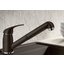 Внутри крана помещается шланг, который можно растянуть, чтобы достать струей воды до второй чаши мойки или тщательно сполоснуть посуду.