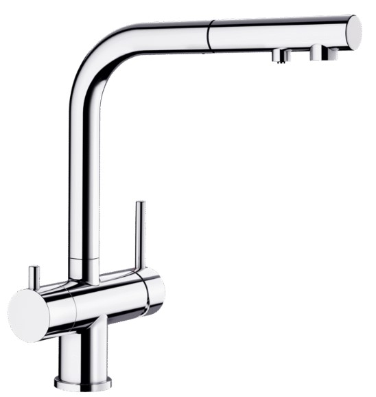 Рычаг для включения фильтрованной воды применяется в современных комбинированных смесителях, где из одного и того же излива подается и водопроводная, и питьевая вода. Такие смесители типа «два в одном» отличаются от обычных тем, что имеют не два подключения, а три, где третье соединяет смеситель с фильтром. Очищенная вода подается по изолированной трубке, проходящей внутри излива. Для удаления накипи, солей металлов, микроорганизмов и прочих вредных примесей могут применяться различные типы фильтров. Проточные фильтры устанавливаются под мойкой и включают несколько картриджей, которые необходимо менять по мере использования. С их помощью можно избавиться от таких примесей, как железо, хлор и многие другие. Устройства с системой обратного осмоса оснащаются диффузором, включающим картриджи для предварительной очистки и осмотическую мембрану, задерживающую практически все вредные примеси.
