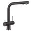 Для подачи чистой воды смесители могут оснащаться единственным рычагом, при помощи которого производится переключение на фильтр. Этот же рычаг регулирует напор и температуру водопроводной воды. Чаще на изливе имеются два рычага, один из которых отвечает только за включение фильтрованной воды.