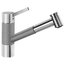 Внутри крана помещается шланг, который можно растянуть, чтобы достать струей воды до второй чаши мойки или тщательно сполоснуть посуду.