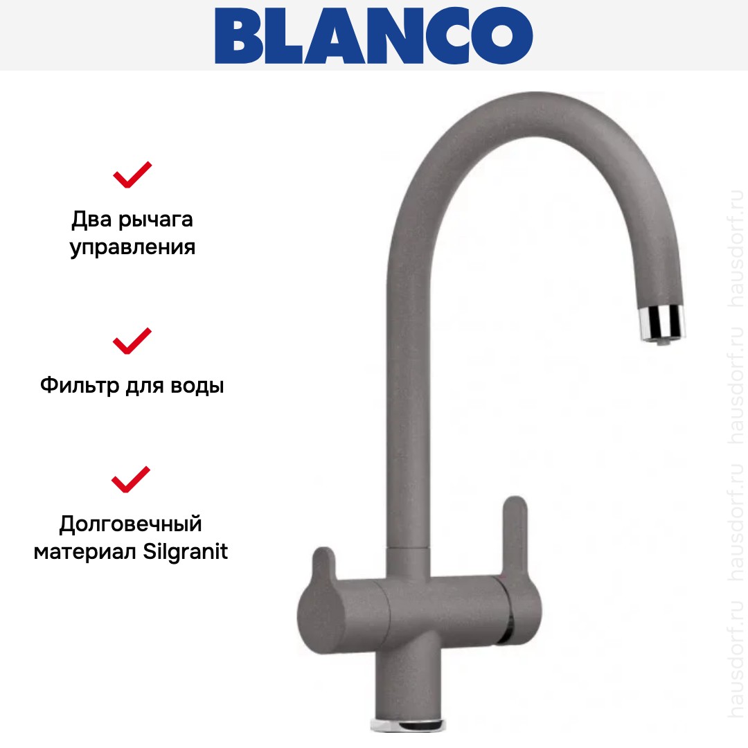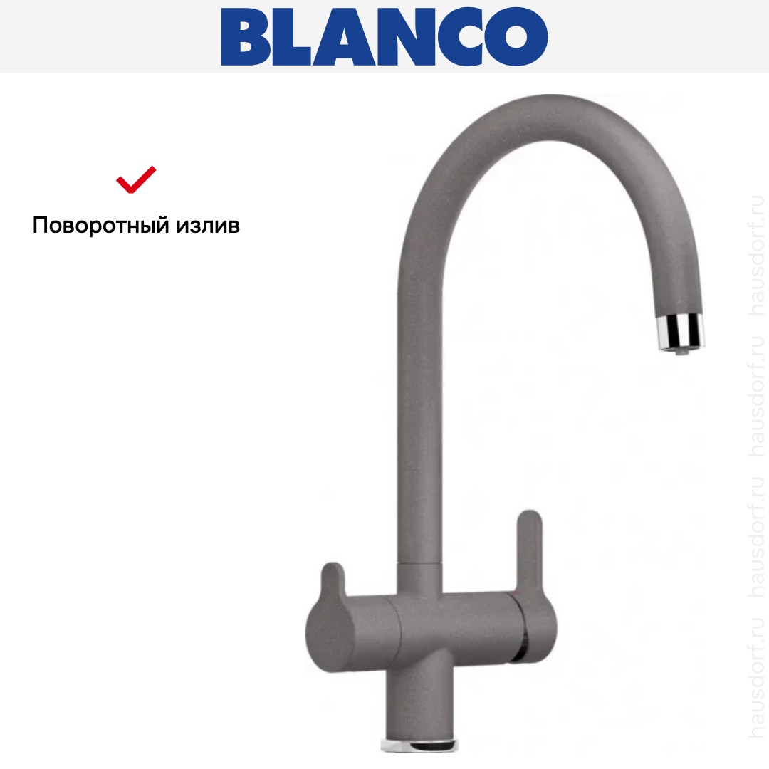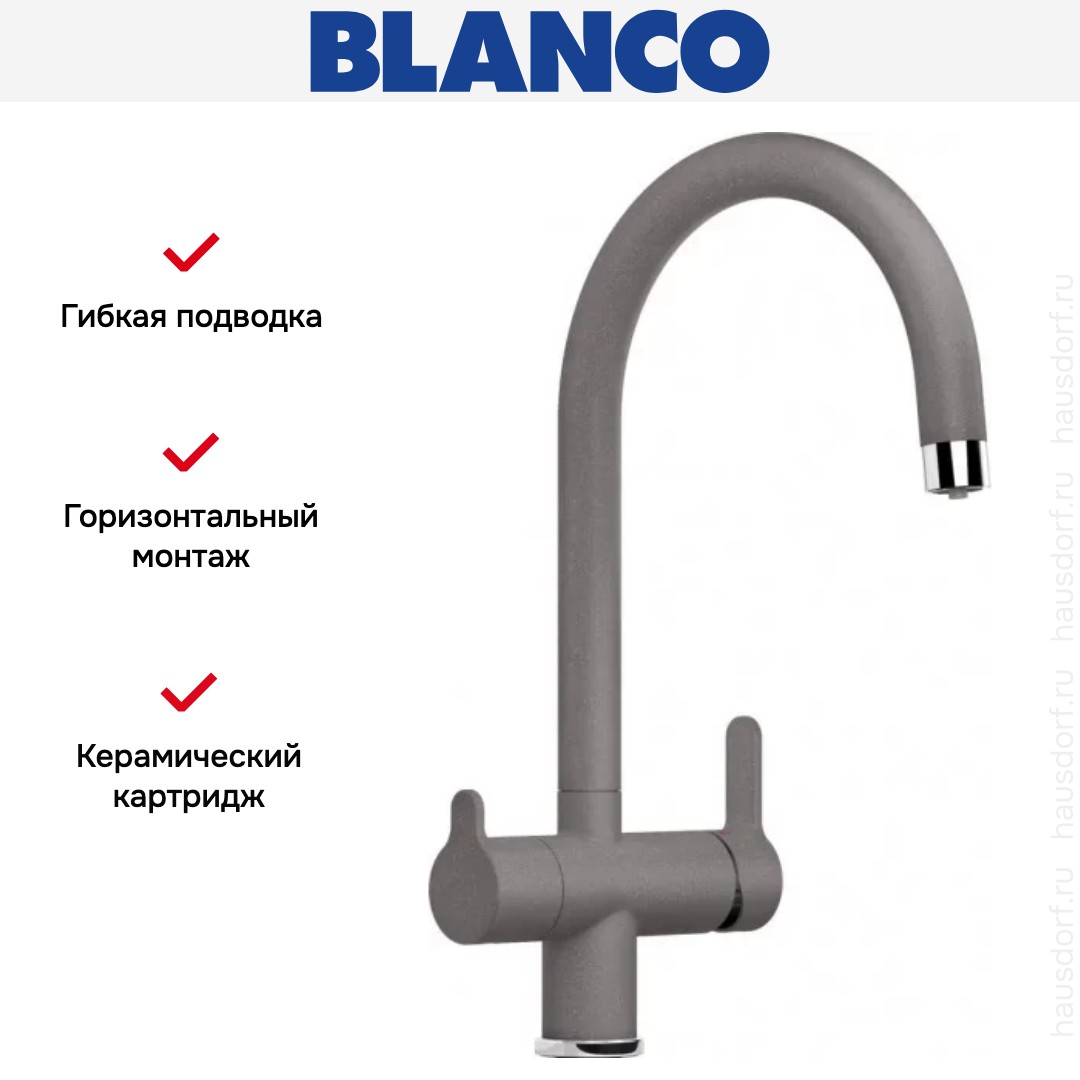 Смеситель Бланко — отличный выбор для кухни и ванной комнаты. Классический вариант с двумя вентилями подойдет большинству пользователей: нужно настраивать напор и температуру воды из «горячей» и «холодной трубы» отдельно, поток смешивается внутри крана и на выходе имеет оптимальную температуру. Благодаря запорному механизму в виде керамических пластин такой смеситель прослужит много лет, так как в нем отсутствуют быстро стирающиеся прокладки; также на клапане практически не образуется накипь. При повороте ручки диски внутри смещаются относительно друг друга — открывают или блокируют воду.