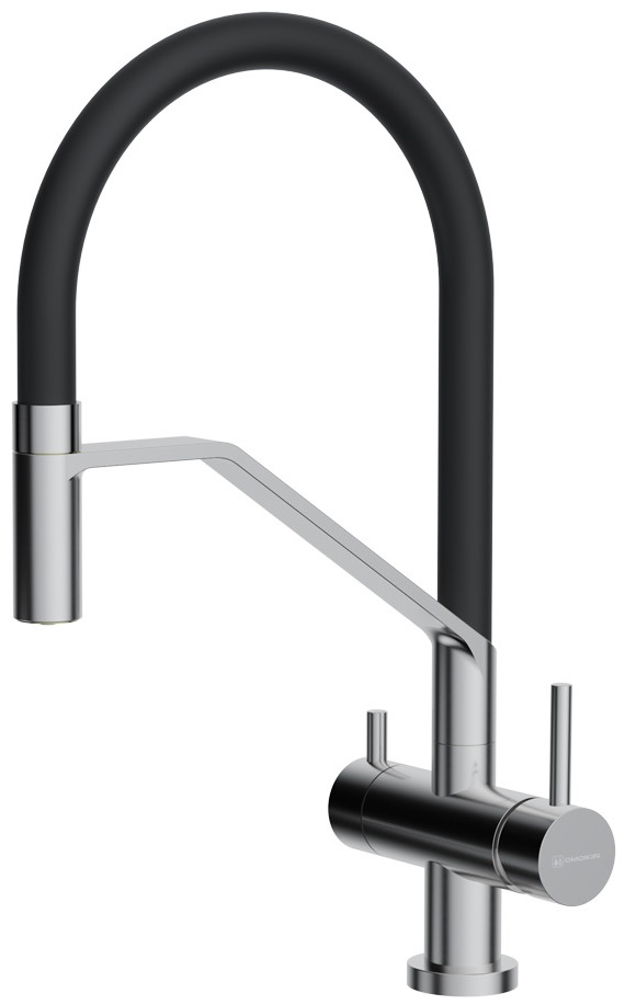 Рычаг для включения фильтрованной воды применяется в современных комбинированных смесителях, где из одного и того же излива подается и водопроводная, и питьевая вода. Такие смесители типа «два в одном» отличаются от обычных тем, что имеют не два подключения, а три, где третье соединяет смеситель с фильтром. Очищенная вода подается по изолированной трубке, проходящей внутри излива. Для удаления накипи, солей металлов, микроорганизмов и прочих вредных примесей могут применяться различные типы фильтров. Проточные фильтры устанавливаются под мойкой и включают несколько картриджей, которые необходимо менять по мере использования. С их помощью можно избавиться от таких примесей, как железо, хлор и многие другие. Устройства с системой обратного осмоса оснащаются диффузором, включающим картриджи для предварительной очистки и осмотическую мембрану, задерживающую практически все вредные примеси.