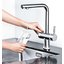 Благодаря особой конструкции вы можете также направить воду из раковины в ванну или из одной чаши мойки в другую одним поворотом крана в нужную сторону. Дополнительная деталь, которая повышает комфорт использования, — аэратор. Он делает поток воды мягче, насыщая его кислородом, таким образом дополнительно уменьшая ее расход: объем струи увеличивается за счет воздуха, а не за счет повышения напора из водопровода. К этой модели можно подключить фильтр для питьевой воды.